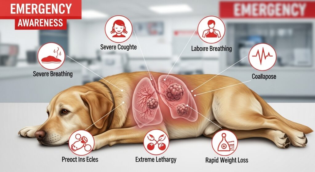 These are direct cancer in dogs lungs symptoms requiring immediate consultation.